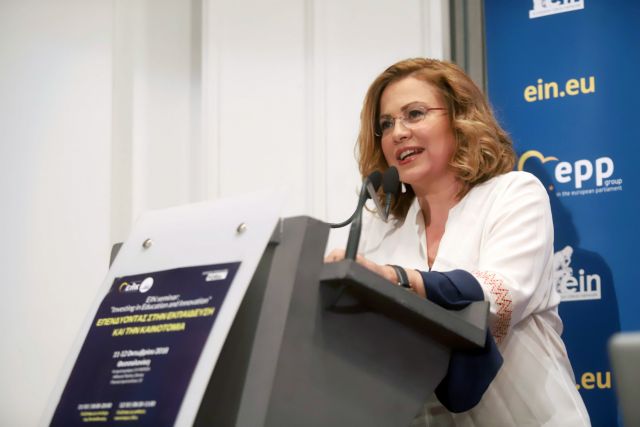 Επισημαίνοντας πως η συμφωνία των Πρεσπών δεν είναι ωφέλιμη για το εθνικό συμφέρον, η εκπρόσωπος Τύπου της ΝΔ άφησε ανοιχτό το ενδεχόμενο μετά τις 17 Δεκεμβρίου ο πρόεδρος του κόμματος, Κυριάκος Μητσοτάκης, να χρησιμοποιήσει το χαρτί της πρότασης μομφής στη Βουλή. «Κάθε μέρα που περνά δημιουργείται ένα τετελεσμένο και το τετελεσμένο αυτό, όπως καταλαβαίνετε, επιβαρύνεται από την ψηφοφορία που διεξάγεται αυτές τις μέρες στη Βουλή της γειτονικής χώρας. Αυτό δεν σημαίνει, όμως, ότι η ΝΔ δεν έχει τη δυνατότητα να χρησιμοποιήσει όλα τα όπλα και να αποφασίσει εκείνη τη στιγμή ποιο είναι το κατάλληλο κοινοβουλευτικό όπλο, προκειμένου να κάνει το επόμενο βήμα» ανέφερε και συμπλήρωσε: