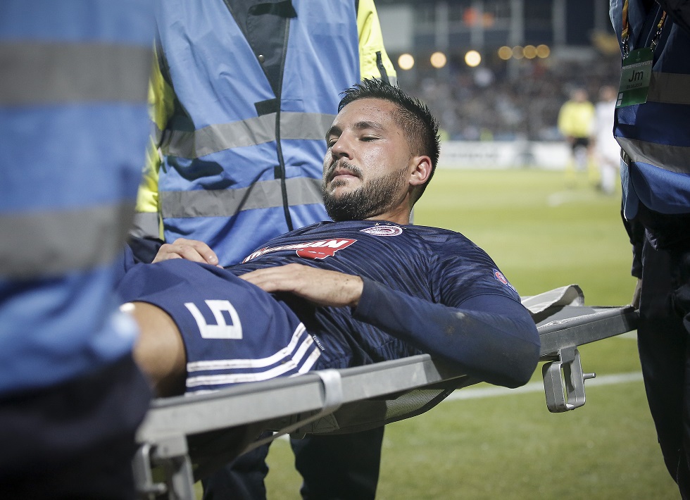 Στο 16’ ο Ισπανός επιθετικός στην προσπάθειά του να γυρίσει την μπάλα στους συμπαίκτες του άπλωσε το πόδι του και τραυματίστηκε. Αμέσως το ιατρικό επιτελείο του Ολυμπιακού έτρεξε πάνω από τον Γκερέρο και του πρόσφερε τις πρώτες βοήθειες, αλλά ο Ιβηρας στράικερ δεν ήταν σε θέση να συνεχίσει το παιχνίδι. Στο 18’ ο Μαρτίνς προχώρησε σε αναγκαστική αλλαγή, βάζοντας τον Λάζαρο Χριστοδουλόπουλο στη θέση του 28χρονου φορ, ο οποίος έφυγε αμέσως για τα αποδυτήρια.