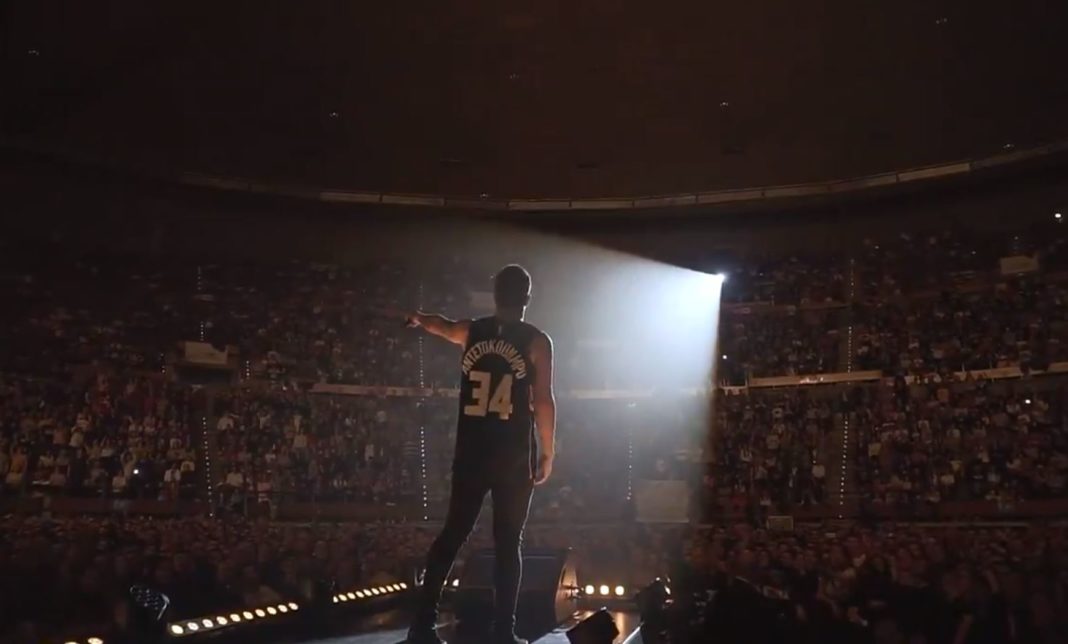 Ο Ισπανός τραγουδιστής εμφανίστηκε στη συναυλία του με τη φανέλα του σούπερ σταρ των Μιλγουόκι Μπακς μπροστά σε πάνω από 20.000 κόσμο.