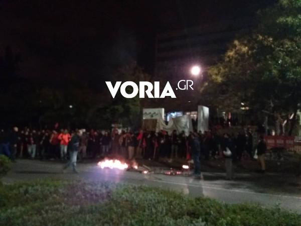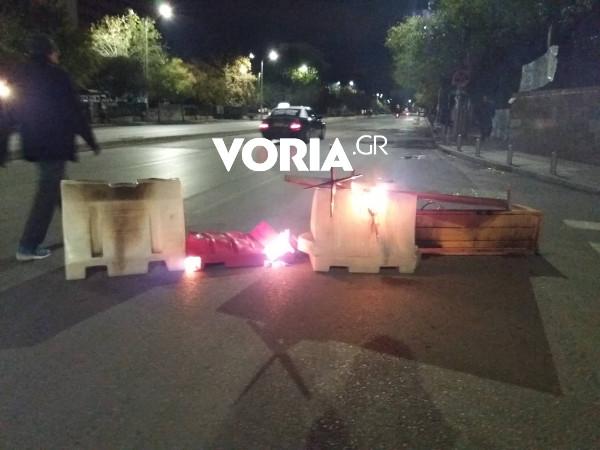 Αντιεξουσιαστές που δεν συμμετείχαν στην πορεία για την επέτειο της εξέγερσης του Πολυτεχνείου βγήκαν από τους χώρους του Ιδρύματος και έστησαν οδοφράγματα έξω από το ΑΠΘ.