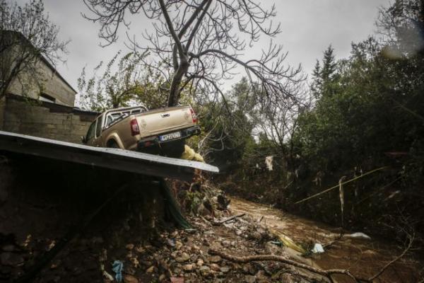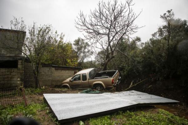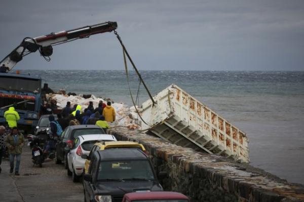 Οι δρόμοι του νησιού πλημμύρισαν, τα κοντέινερς έφυγαν από το λιμάνι κι έπεσαν στη θάλασσα, ενώ οι χείμαρροι κατέστρεψαν δρόμους.
