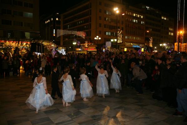 Δεκάδες πυροτεχνήματα φώτισαν τον ουρανό με το άναμμα του Χριστουγεννιάτικου δέντρου, ενώ ακολούθησε η συναυλία από το δημοφιλές συγκρότημα Kings, στη συμβολή του πεζόδρομου της Σωτήρος Διός με την Ηρώων Πολυτεχνείου.