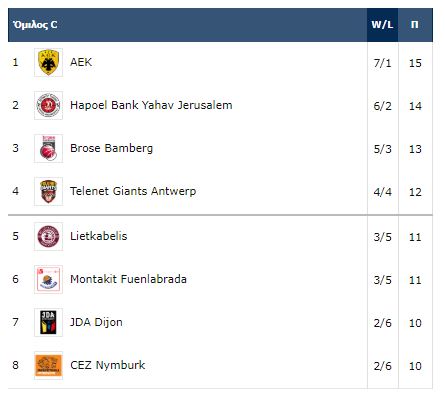 Από την πλευρά της η ΑΕΚ, την Τρίτη (11/12) είχε επικρατήσει μέσα στην Ιερουσαλήμ της Χάποελ με 83-70 κάνοντας «άλμα» για την κατάκτηση της πρωτιάς στον όμιλό της.