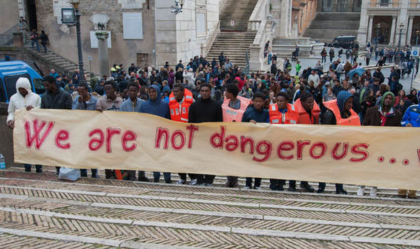Στη διαδήλωση που διοργανώθηκε από το συνδικάτο USB και το αριστερό κίνημα Potere al Popolo (Εξουσία στον Λαό), στην οποία μετείχαν και πολλοί μετανάστες, οι μετέχοντες φώναζαν συνθήματα, όπως “Στοπ στον Ρατσισμό” και “Όχι Σαλβίνι”.