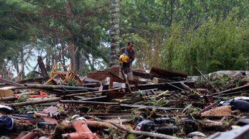 Τοπίο απόλυτης καταστροφής άφησε πίσω του το τσουνάμι: δέντρα ξεριζωμένα, στέγες που αποκολλήθηκαν. Η παραλία Καρίτα έχει καλυφθεί από ερείπια.