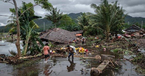 Στο χωριό Σουκαράμε, η 61χρονη Σουνάρτι με το νερό έως τα γόνατα, ψάχνει να βρει οτιδήποτε στα χαλάσματα του κατεστραμμένου σπιτιού της αναμένοντας τη βοήθεια των αρχών. «Προς το παρόν δεν έχουμε λάβει καμία βοήθεια» είπε η ίδια στο Γαλλικό Πρακτορείο.