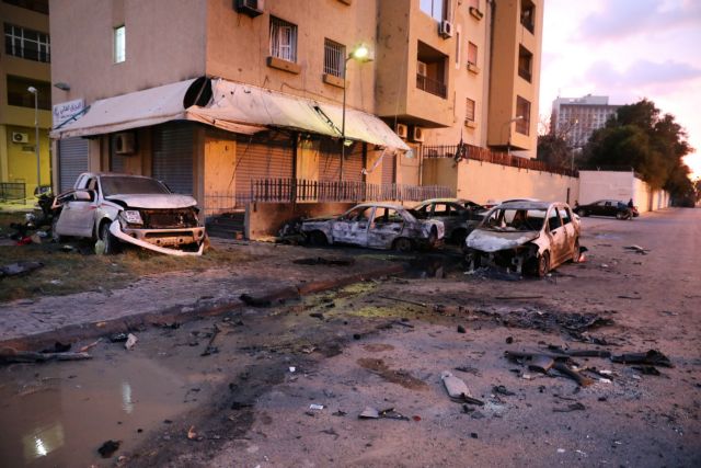 Τρεις «στρατιώτες του χαλιφάτου», που έφεραν γιλέκα με εκρηκτικά και αυτόματα όπλα, κατάφεραν να «καταλάβουν εξ εφόδου τα κεντρικά γραφεία του υπουργείου Εξωτερικών της λιβυκής κυβέρνησης των αποστατών στο κέντρο της Τρίπολης», κατά την ανακοίνωση του ΙΚ που κυκλοφορεί σε ιστότοπους κοινωνικής δικτύωσης και έφερε στο φως της δημοσιότητας το προαναφερθέν αμερικανικό κέντρο.