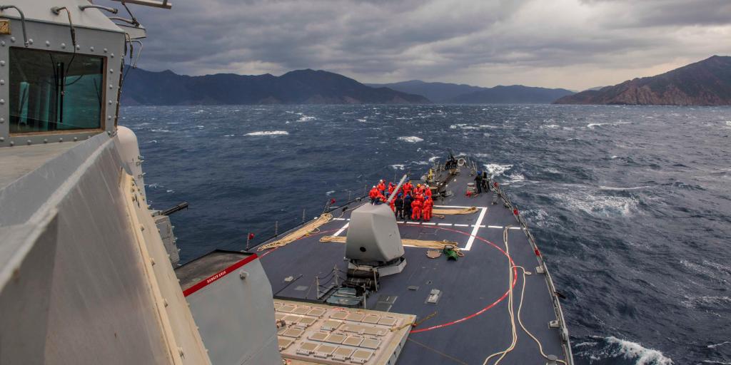 #Sailors signal to a Turkish navy SH-70 helicopter during deck landing qualifications aboard the #USSPorter (DDG 78) in the #MediterraneanSea #PartnershipsMatter #US6thFleet @USEmbassyTurkey pic.twitter.com/VIo8M0o2ql