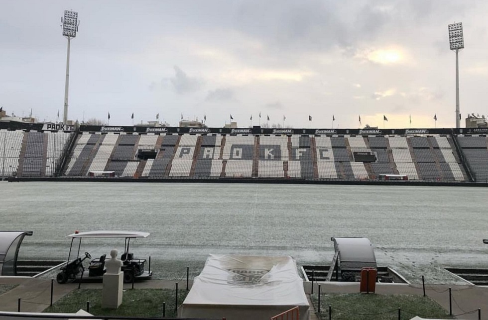 Η κακοκαιρία που πλήττει όλη τη χώρα τις τελευταίες μέρες μετέφερε και τη σημερινή (4/1) προπόνηση του ΠΑΟΚ στο γήπεδο της Τούμπας, με την έντονη κατά διαστήματα χιονόπτωση να μην επηρεάζει το πρόγραμμα της ομάδας.