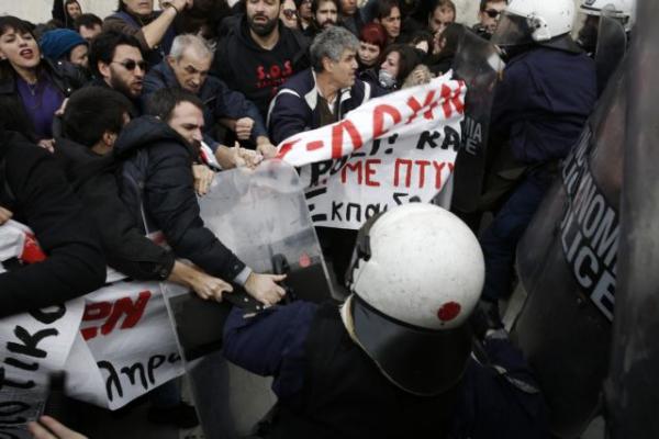 Ένταση επικράτησε κατά τη διάρκεια της πορείας των εκπαιδευτικών στο κέντρο της Αθήνας, όταν οι διαδηλωτές επιχείρησαν να εισβάλουν στον προαύλιο χώρο της Βουλής των Ελλήνων.