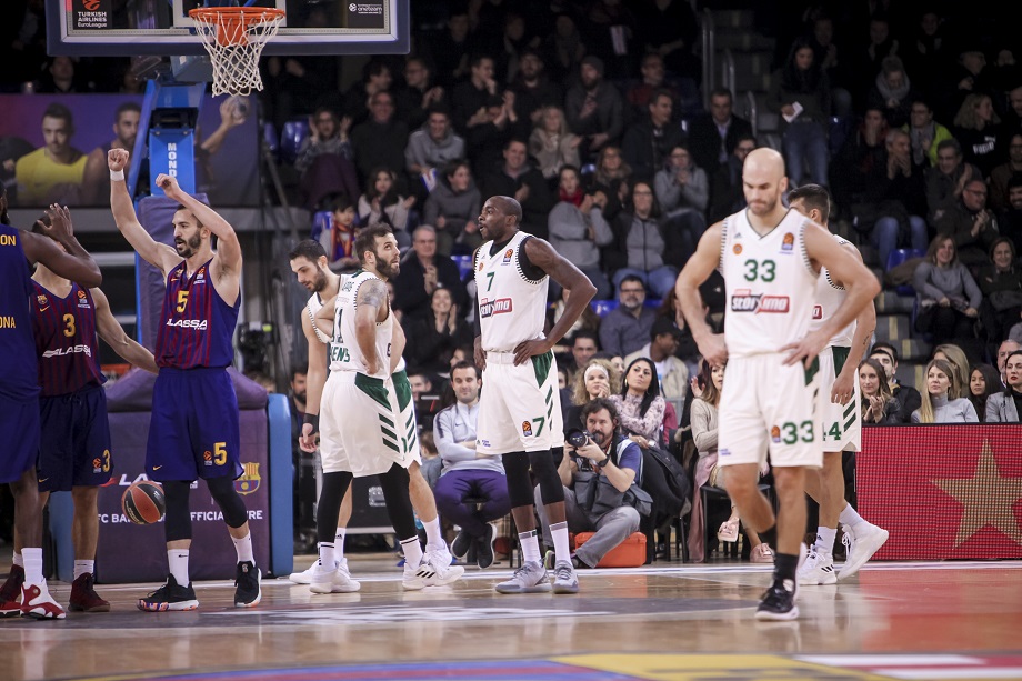 Παρά την μεγάλη του προσπάθεια ο Παναθηναϊκός δεν τα κατάφερε. Έχασε και στη Βαρκελώνη μένοντας στη μία μόλις νίκη εκτός έδρας, επίδοση που αν δεν βελτιωθεί τον οδηγεί με μαθηματική ακρίβεια εκτός οκτάδας.