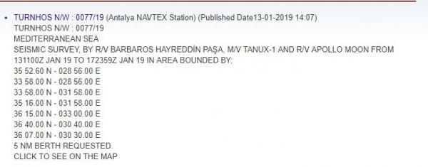 Λίγη ώρα μετά την ανακοίνωση -διά στόματος πρωθυπουργού- της είδησης ότι ο Α/ΓΕΕΘΑ Βαγγέλης Αποστολάκης αναλαμβάνει την θέση του υπουργού Άμυνας, οι Τούρκοι εξέδωσαν navtex δεσμεύοντας περιοχή για έρευνες από το Barbaros η οποία ξεκινά άμεσα και θα διαρκέσει έως τις 17 Ιανουαρίου.