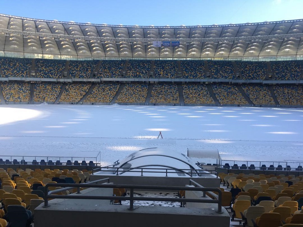 Οι Ερυθρόλευκοι θα αντιμετωπίσουν δύσκολες καιρικές συνθήκες στο Κίεβο, το οποίο το χειμώνα καλύπτεται από χιόνι και η θερμοκρασία βρίσκεται σταθερά κάτω από το μηδέν. Χαρακτηριστική είναι η φωτογραφία που ανάρτησε στα social media ο Υπεύθυνος Διεθνών Σχέσεων του Ολυμπιακού, Κώστας Βερνίκος και δείχνει το Ολιμπίνσκι καλυμμένο από χιόνι!