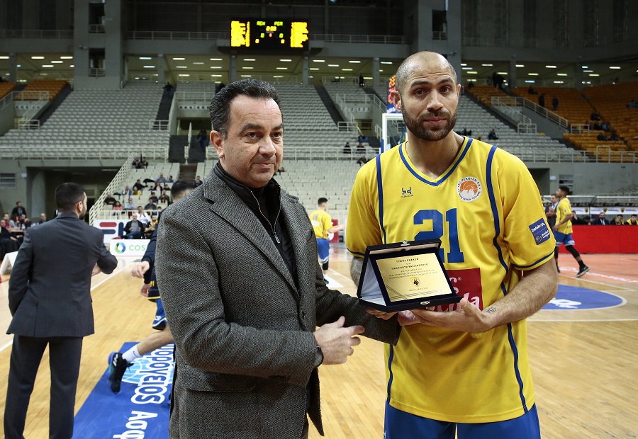 Αξίζει να σημειωθεί πως την απονομή της πλακέτας έκανε ο άμεσος συνεργάτης του Μάκη Αγγελόπουλου στην ΚΑΕ ΑΕΚ, Χάρης Κουτάς, ενώ ο κόσμος της Ένωσης που βρίσκεται στο γήπεδο προσέφερε ένα θερμό χειροκρότημα για τον 35χρονο φόργουορντ του Περιστερίου.