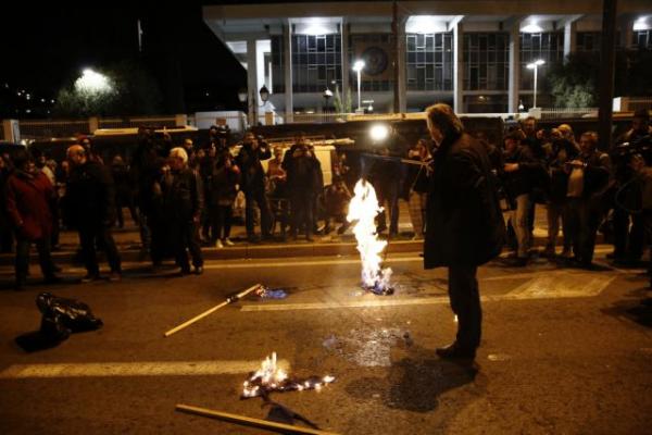 Οι διαδηλωτές παρέμειναν έξω από την αμερικάνικη πρεσβεία πάρα το αρχικό τους κάλεσμα για πορεία προς τη Βουλή.