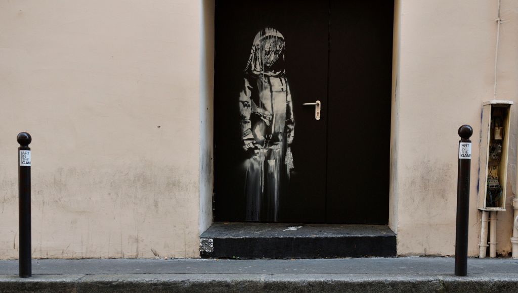 Το έργο αυτό, μέρος μιας σειράς αποτελούμενης κυρίως από τοιχογραφίες που πιστεύεται ότι ζωγράφισε ο Μπάνκσι στη γαλλική πρωτεύουσα τον περασμένο Ιούλιο, εικονίζει μια γυναίκα με μαντίλα που θρηνεί.