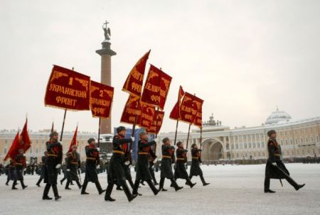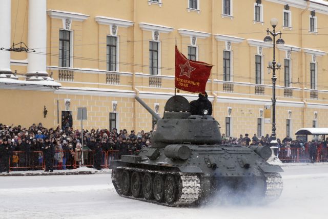 Με μια εντυπωσιακή επίδειξη από τη ρωσική ακροβατική αεροπορική ομάδα “Στρίζι” ολοκληρώθηκε η στρατιωτική παρέλαση για τον εορτασμό των 75 ετών από τη λήξη της πολιορκίας του Λένινγκραντ από τους Ναζί.