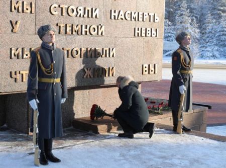 Ο πρόεδρος της Ρωσίας Βλαντιμίρ Πούτιν κατέθεσε στεφάνι στο μνημείο των στρατιωτών που έδωσαν τη ζωή τους κατά τη διάρκεια της πολιορκίας. Ο Ρώσος πρόεδρος θα συμμετάσχει αργότερα σήμερα σε σειρά άλλων εκδηλώσεων, στην Αγία Πετρούπολη και την ευρύτερη περιοχή.