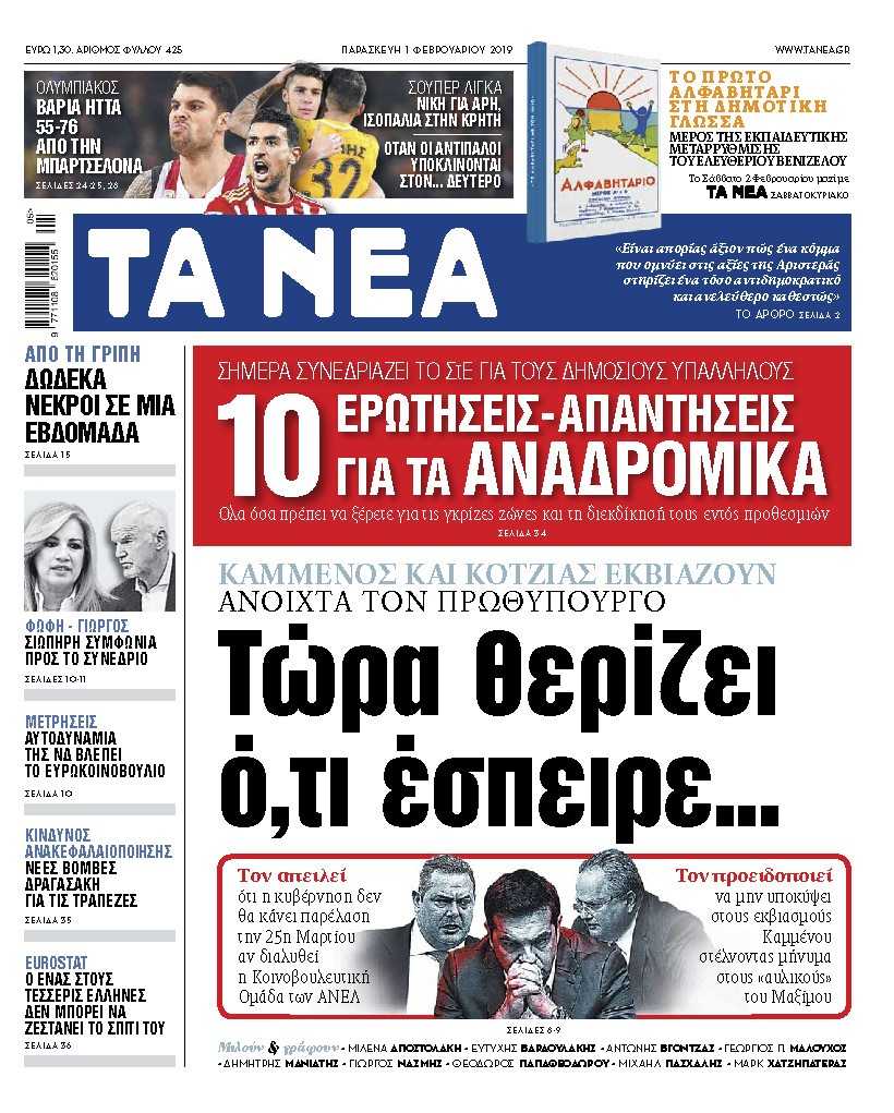● Ο Καμμένος τον απειλεί ότι η κυβέρνηση δεν θα κάνει παρέλαση την 25η Μαρτίου αν διαλυθεί η κοινοβουλευτική ομάδα των ΑΝΕΛ