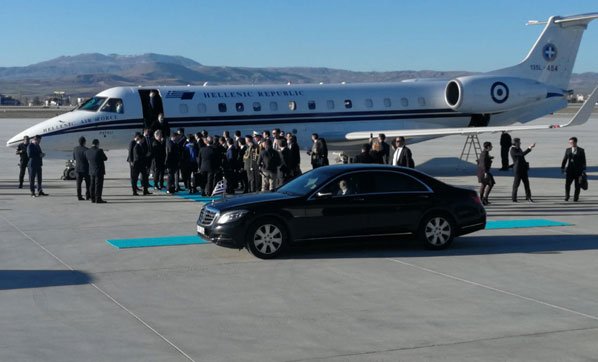 Τον έλληνα πρωθυπουργό υποδέχθηκε στο αεροδρόμιο ο αντιπρόεδρος της τουρκικής κυβέρνησης Φουάτ Οκτάι και η υπουργός Εμπορίου Ρουχσάρ Πεκτζάν.