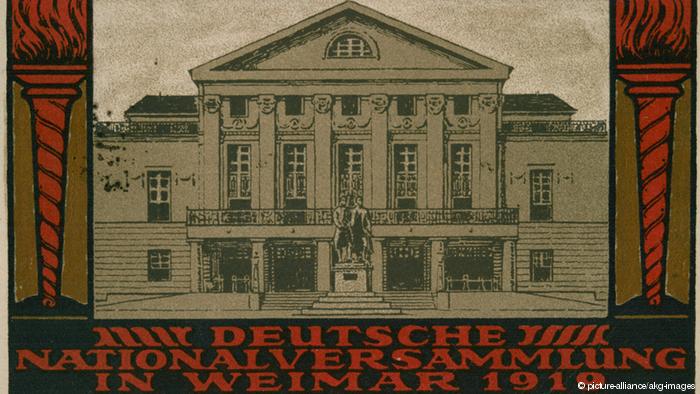 Στη Βαϊμάρη στις 6 Φεβρουαρίου 1919, λίγες εβδομάδες μετά το τέλος του Α’ Παγκοσμίου Πολέμου (1914-1918) και της πτώσης της μοναρχίας, για πρώτη φορά συνήλθε η Γερμανική Εθνοσυνέλευση, η οποία θέσπισε εκεί ένα νέο σύνταγμα.