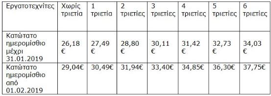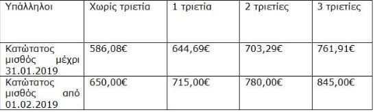Με βάση την αύξηση του κατώτατου μισθού αναπροσαρμόζονται και οι διαμορφωμένες τριετίες ως εξής: