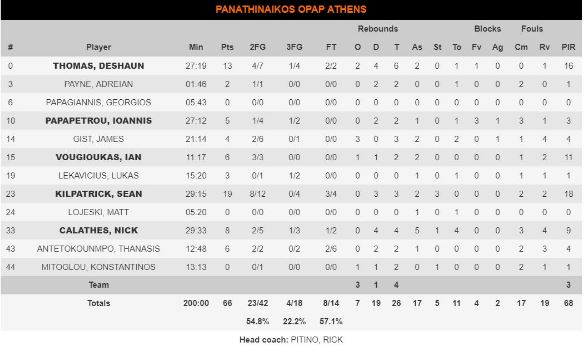 Από τη Φενέρ, που είχε 12/29 τρίποντα, οι Μέλι (14 (4/5τριπ), Γκριν (12π, 3/5τριπ) και Γκούντουριτς (12-, 2/2διπ, 2/3τριπ) ήταν οι καλύτεροι. Από τον Παναθηναϊκό κανένας δεν διασώθηκε…