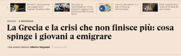 «Το ερώτημα είναι απλό: ‘’Αν ζείτε στην Ελλάδα και έχεις πτυχίο στη μηχανική ρομποτικής, τι κάνεις; Φεύγεις. Δεν υπάρχει μέλλον εδώ’’ είναι η φράση με την οποία ξεκινά το άρθρο με τίτλο «Η Ελλάδα και η κρίση που δεν έχει τελειώσει ακόμα: τι ωθεί τους νέους ανθρώπους στη μετανάστευση».