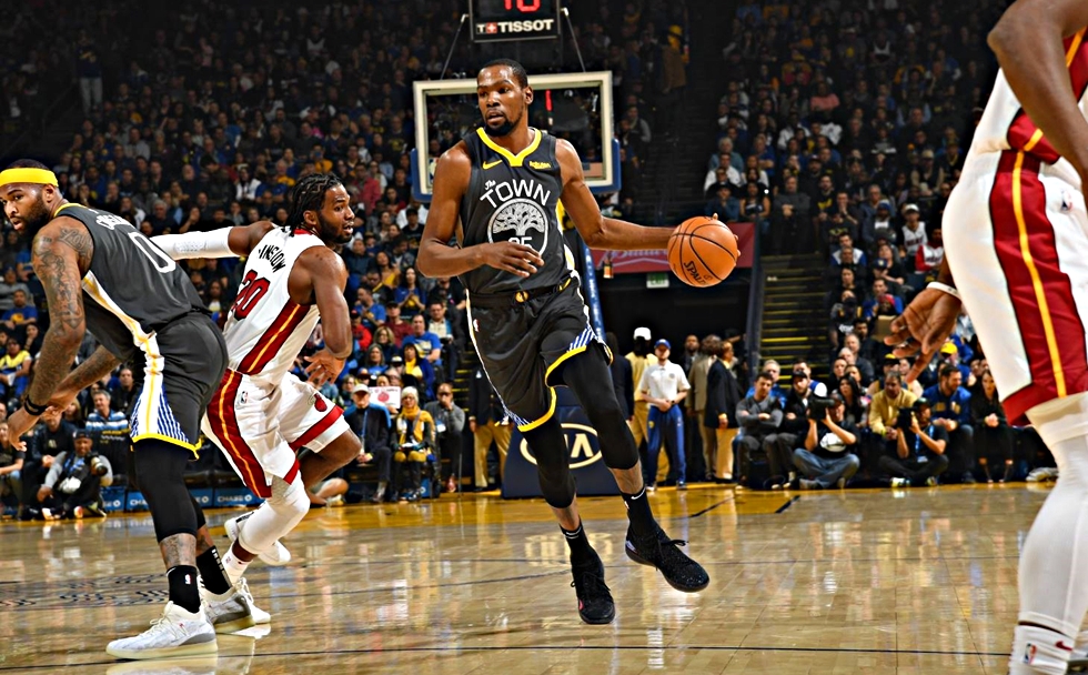 Οι Γκόλντεν Στέιτ Γουόριορς υποδέχτηκαν στην Oracle Arena τους Μαϊάμι Χιτ. Οι φιλοξενούμενοι μπήκαν με πολλά γκάζια στην αναμέτρηση για να προηγηθούν γρήγορα με 26-7 στα μέσα του πρώτου δωδεκάλεπτου. Οι παίκτες του Στιβ Κερ όμως δεν πανικοβλήθηκαν και άρχισαν ροκανίζουν τη διαφορά. Έφτασαν μάλιστα στο -5 (59-54) στο ημίχρονο.