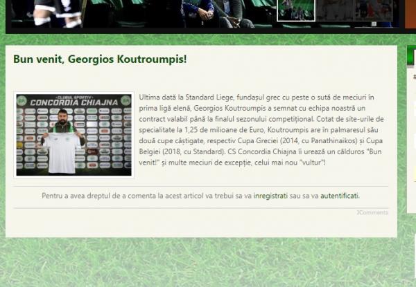 Επόμενο σταθμός στην καριέρα του Γιώργου Κουτρουμπή θα είναι η ρουμανική Κονκόρντια Τσιάινα, η οποία επισημοποίησε την έναρξη της συνεργασίας τους μέχρι το τέλος της σεζόν.