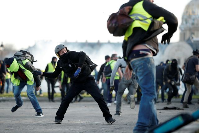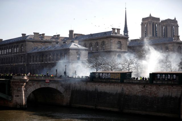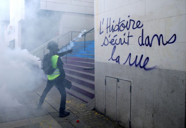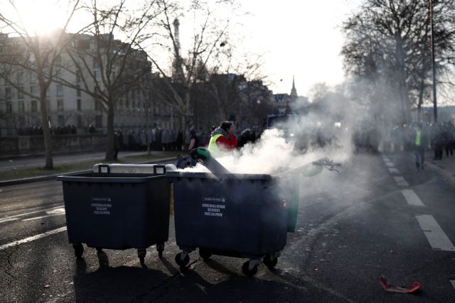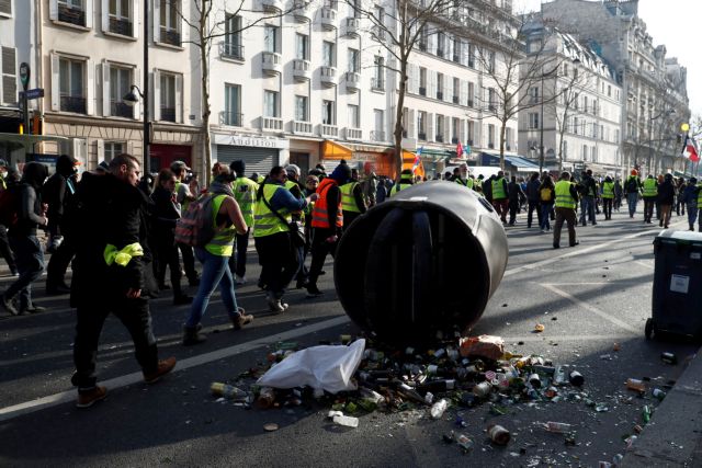Η γαλλική αστυνομία προχώρησε σε ρίψεις δακρυγόνων για να διαλύσει το πλήθος των διαδηλωτών, που πέταγαν εναντίον των μελών των υπηρεσιών ασφαλείας αντικείμενα, ενώ έβαλαν σήμερα φωτιά και σε κάδους απορριμμάτων στο Παρίσι, τη Λιόν και το Μπορντό, στα επεισόδια που ξέσπασαν κατά τη διάρκεια των κινητοποιήσεων των κίτρινων γιλέκων, για 14ο συνεχόμενο Σαββατοκύριακο.