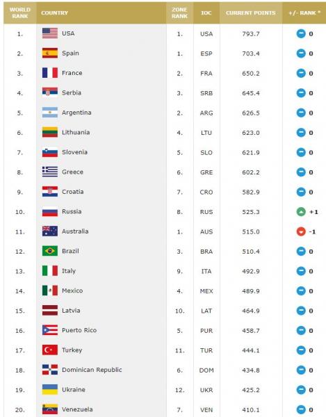 ΗΠΑ, Ισπανία, Γαλλία, Σερβία, Αργεντινή, Λιθουανία και η Κίνα ως οικοδέσποινα της διοργάνωσης.