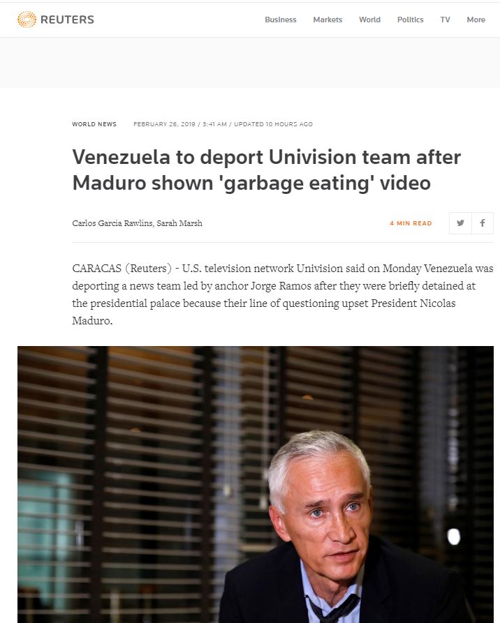 Συγκεκριμένα, όπως αναφέρει το Reuters ο πρόεδρος της Βενεζουέλας έγινε έξαλλος με τη δημοσιογραφική ομάδα του αμερικανικού τηλεοπτικού δικτύου Univision.