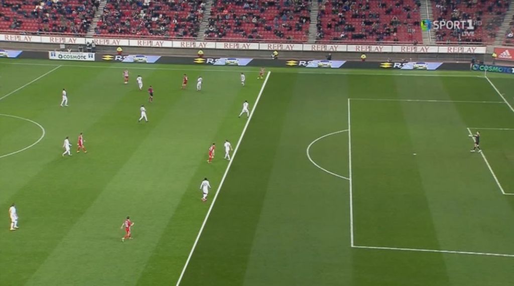 Στο 65’ ο μπακ του Ολυμπιακού έβγαινε στην πλάτη της άμυνας της Λαμίας, αλλά ο διαιτητής σταμάτησε τη φάση, υποδεικνύοντας λανθασμένα οφσάιντ