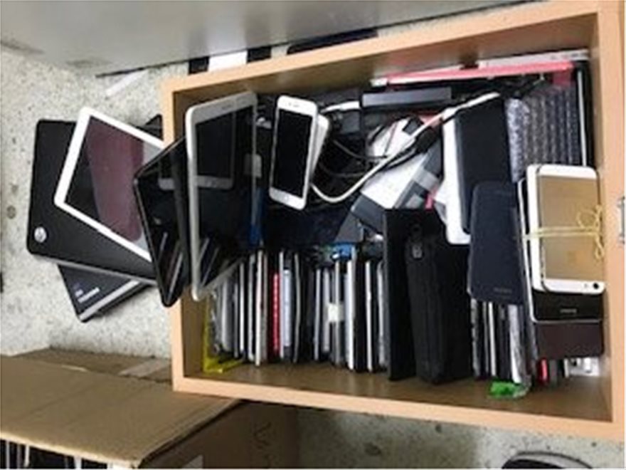 Κατασχέθηκε πλήθος κλοπιμαίων, όπως πάνω από 350 φορητοί ηλεκτρονικοί υπολογιστές, 300 κινητά τηλέφωνα, καθώς επίσης μαχαίρια, στιλέτα, διαρρηκτικά εργαλεία, το χρηματικό ποσό των 16.000 ευρώ και 60 συσκευασίες κάνναβης έτοιμες προς διάθεση στην παράνομη αγορά.