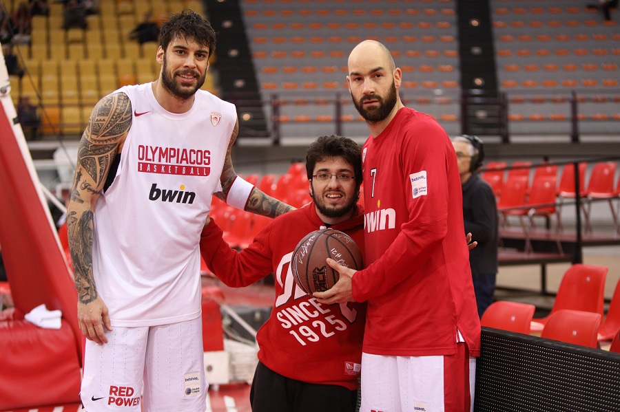 Ο οπαδός των Ερυθρόλευκων ο οποίος δέχθηκε την επίθεση των χούλιγκανς στο Παπαστράτειο ηγήθηκε της παρουσίασης της ομάδας στο ματς με τον Άρη στο ΣΕΦ.