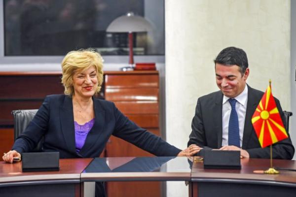 Συμφωνία για τη διάνοιξη συνοριακής διόδου Λαιμός – Μάρκοβα Νόγκα, στην περιοχή των Πρεσπών υπέγραψαν η αναπληρωτής υπουργός Εξωτερικών της Ελλάδας, Σία Αναγνωστοπούλου, και ο υπουργός Εξωτερικών των Σκοπίων, Νικολά Ντιμιτρόφ.