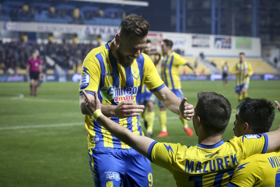 Ο Πανιώνιος προσπαθούσε αλλά δεν μπορούσε να απειλήσει απέναντι στην καλά οργανωμένη άμυνα του Παναιτωλικού. Κι όχι μόνο αυτό, αλλά πριν το φινάλε του ημιχρόνου δέχθηκε και τρίτο γκολ. Στο 41’ ο Μαρινάκης σέντραρε από τα δεξιά, ο Μαζουρέκ έπιασε μια αριστεχνική, διαγώνια κεφαλιά για να στείλει τη μπάλα στην απέναντι γωνία σε ένα καταπληκτικό γκολ.