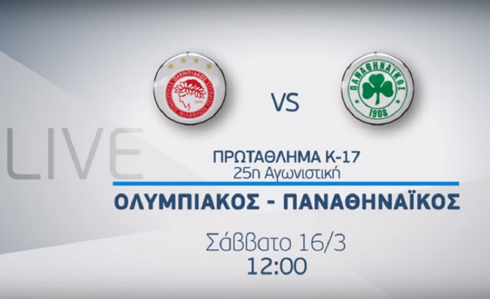 Η Κ17 του Ολυμπιακού υποδέχεται στο Ρέντη την αντίστοιχη του Παναθηναϊκού, το Σάββατο (16/3), για την 25η αγωνιστική του πρωταθλήματος.