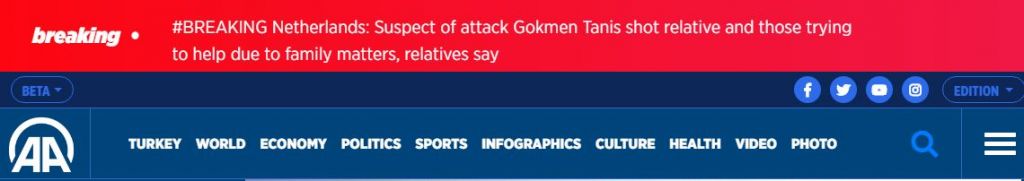 Πρόσθεσε δε, ότι πριν από λίγα χρόνια είχε συλληφθεί ως ύποπτος για διασυνδέσεις με τον ISIS, αλλά αφέθηκε ελεύθερος. «Δεν ήταν ενεργό μέλος της τουρκικής κοινότητας στην Ολλανδία, ήταν μάλλον ερημίτης» σημείωσε.