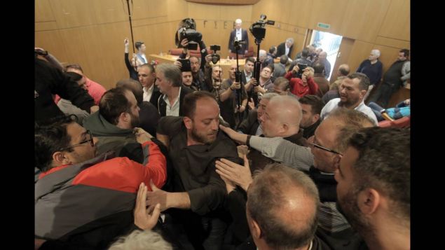 Τελικά οι σύνεδροι πιάστηκαν στα χέρια με σπρωξίματα και φωνές.