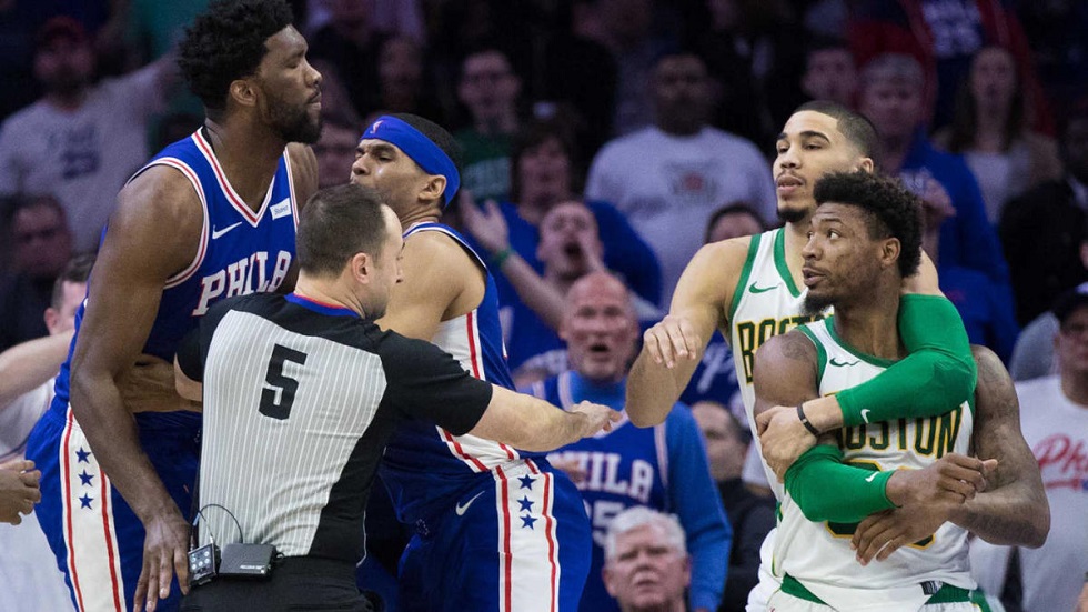 Θυμίζουμε πως πάνω σε μια φάση ο Εμπίντ χτύπησε τον Σμαρτ κι εκείνος έπεσε στο έδαφος. Στη συνέχεια ο κάθε άλλο παρά ήσυχος γκαρντ των Σέλτικς έσπρωξε τον Καμερουνέζο σέντερ και εκείνος βρέθηκε στο παρκέ.Ευτυχώς μπήκαν στη μέση οι ψυχραιμότεροι και αποφεύχθηκε η περαιτέρω συνέχιση του καυγά των δύο που δεν γνωρίζουμε που θα είχε καταλήξει καθώς κανείς από τους δύο δεν φημίζεται για την ψυχραιμία του.