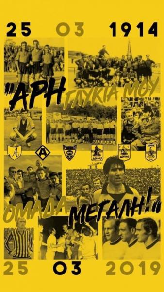 Για τα γενέθλια της ομάδας, οι κίτρινοι ανάρτησαν φωτογραφία των αδερφών Βικελίδη, των Νικηφόρου, Κώστα και Κλεάνθη, ενώ δημοσίευσαν και κολλάζ που απεικονίζει πολλές σημαντικές προσωπικότητες που πέρασαν από τον ποδοσφαιρικό Άρη, μεταξύ άλλων τους Αλκέτα Παναγούλια, Ντίνο Κούη, Αλέκο Αλεξιάδη, Όλε Σκόμποε και Νίκο Καμπάνη.