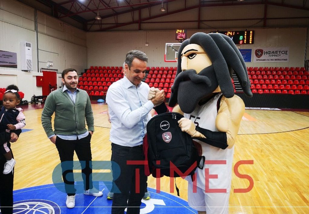 Το κλειστό Γυμναστήριο της Μύρινας «Νίκος Σαμαράς», την έδρα του Ήφαιστου Λήμνου, επισκέφτηκε ο Κυριάκος Μητσοτάκης πριν αναχωρήσει από το νησί, για να δει την προπόνηση της ομάδας.