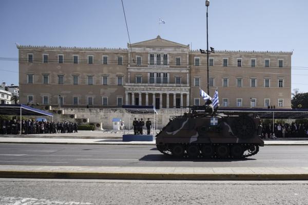 Πλήθος κόσμου παρακολούθησε την παρέλαση της 25ης Μαρτίου στο Σύνταγμα στην οποία «πρωταγωνίστησαν» άρματα μάχης, πεζοπόρα τμήματα των ενόπλων δυνάμεων και μαχητικά αεροσκάφη.
