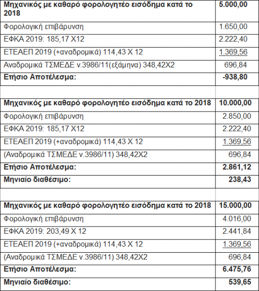 Δείτε τα παραδείγματα που επεξεργάστηκε το ΤΕΕ με βάση το επίπεδο ετήσιου εισοδήματος και τα πραγματικά ειδοποιητήρια που λαμβάνουν οι μηχανικοί: