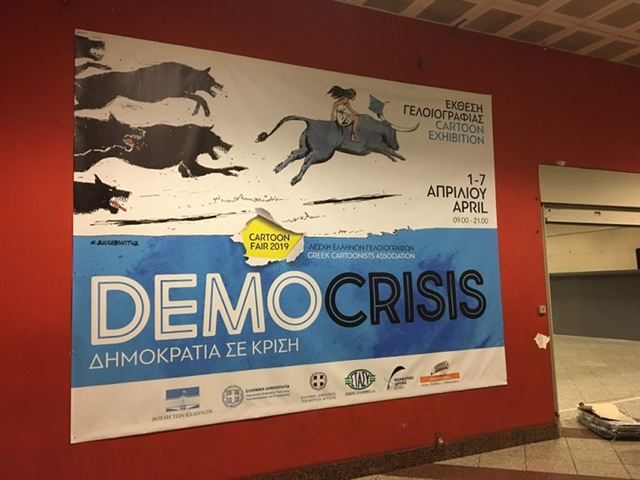 Η Λέσχη Ελλήνων Γελοιογράφων πραγματοποιεί για τέταρτη συνεχή χρονιά έκθεση γελοιογραφίας στον εκθεσιακό χώρο του Μετρό Συντάγματος, με τίτλο «DEMOCRISIS – Δημοκρατία σε κρίση».