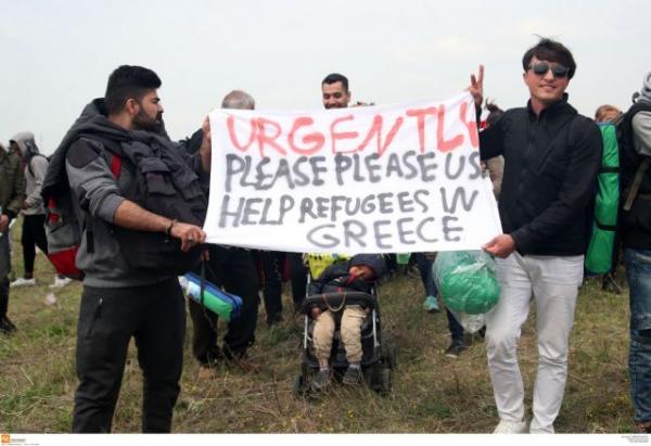 Ένας εκ των προσφύγων άνοιξε πανό με την ελληνική σημαία και το σύνθημα «Βοηθήστε μας. Σας αγαπάμε» ενώ άλλοι φώναξαν στα ελληνικά και τα αγγλικά «ανοίξτε τα σύνορα».