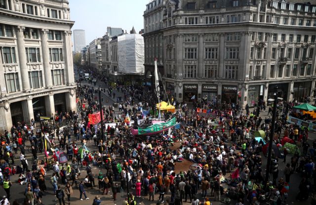 Η Extinction Rebellion, η οποία στις αρχές του μήνα έγινε πρωτοσέλιδο με μια ημίγυμνη διαδήλωσή της στο κοινοβούλιο, ζητεί από την κυβέρνηση να μειώσει στο μηδέν τις εκπομπές αερίων του θερμοκηπίου. Το κίνημα αυτό γεννήθηκε στο Ηνωμένο Βασίλειο αλλά έγινε διεθνές. Χθες προανήγγειλε μια εβδομάδα διαδηλώσεων.