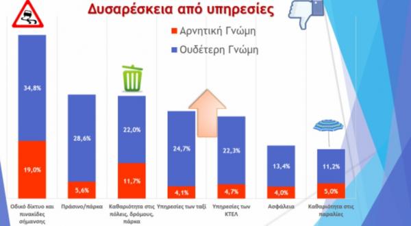 Ο αλλοδαπός επισκέπτης αισθάνεται εξαιρετικά ικανοποιημένος από τις υπηρεσίες που του προσφέρουν τα τουριστικά καταλύματα, οι χώροι εστίασης, αλλά και η συμπεριφορά των ντόπιων. Έχει βελτιώσει σε μεγάλο βαθμό την εικόνα του για τα μεταφορικά μέσα (λεωφορεία, ταξί), συνεχίζει όμως να νιώθει ανασφαλής για την κατάσταση του οδικού δικτύου & την οδική σήμανση, απογοητευμένος από την καθαριότητα στους δρόμους του αστικού ιστού αλλά και προβληματισμένος από την έλλειψη πάρκων.